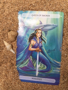 Queen of Swords (Ketegaran) – Wanita yang cerdas, dewasa, bersinar. Dominan di segala situasi. Mandiri. Kartu ini menggambarkan wanita yang berpikiran jernih, percaya diri, tatapannya yang lihai mengungkap rahasia, pedangnya memotong kepalsuan. Saran kartu ini adalah bersiaplah untuk membuat keputusan yang kuat, atau menanggapi keputusan akhir yang dibuat oleh seorang wanita.