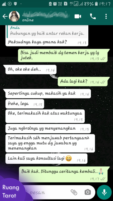 Beberapa testimonial klien yang sudah menggunakan jasa RuangTarot. Kami tunggu giliran anda :)